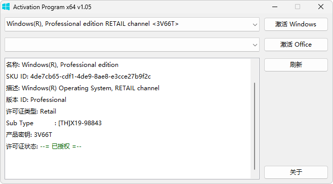2025.02.24 更新 HEU_KMS_Activator vβ20250224(测试版),新增 Activation Program v1.05 汉化版(th_sjy 汉化)